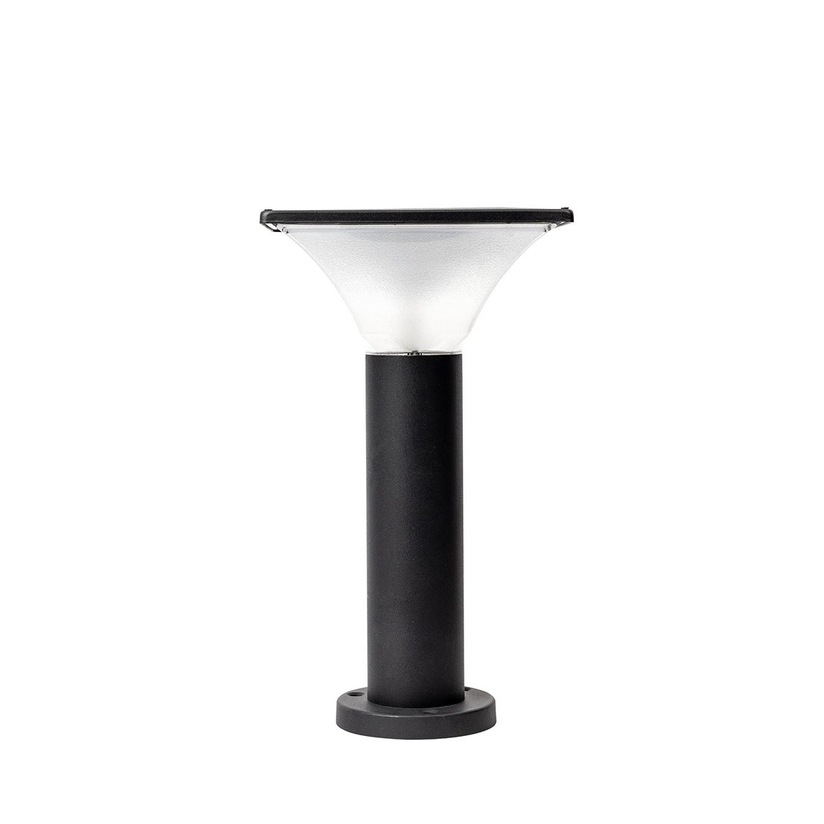 Jardinera solar decorativa con panel de 7W. Ideal para jardines, senderos y entradas. 200 lúmenes y tono de luz ajustable.