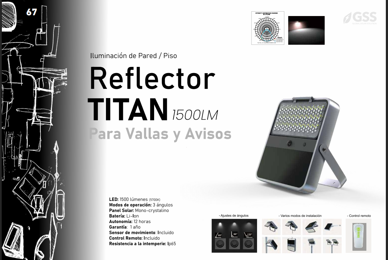 El TITÁN fue diseñado específicamente para iluminar vallas publicitarias y avisos. Su control remoto permite un manejo cómodo y su sensor de movimiento añade seguridad.
